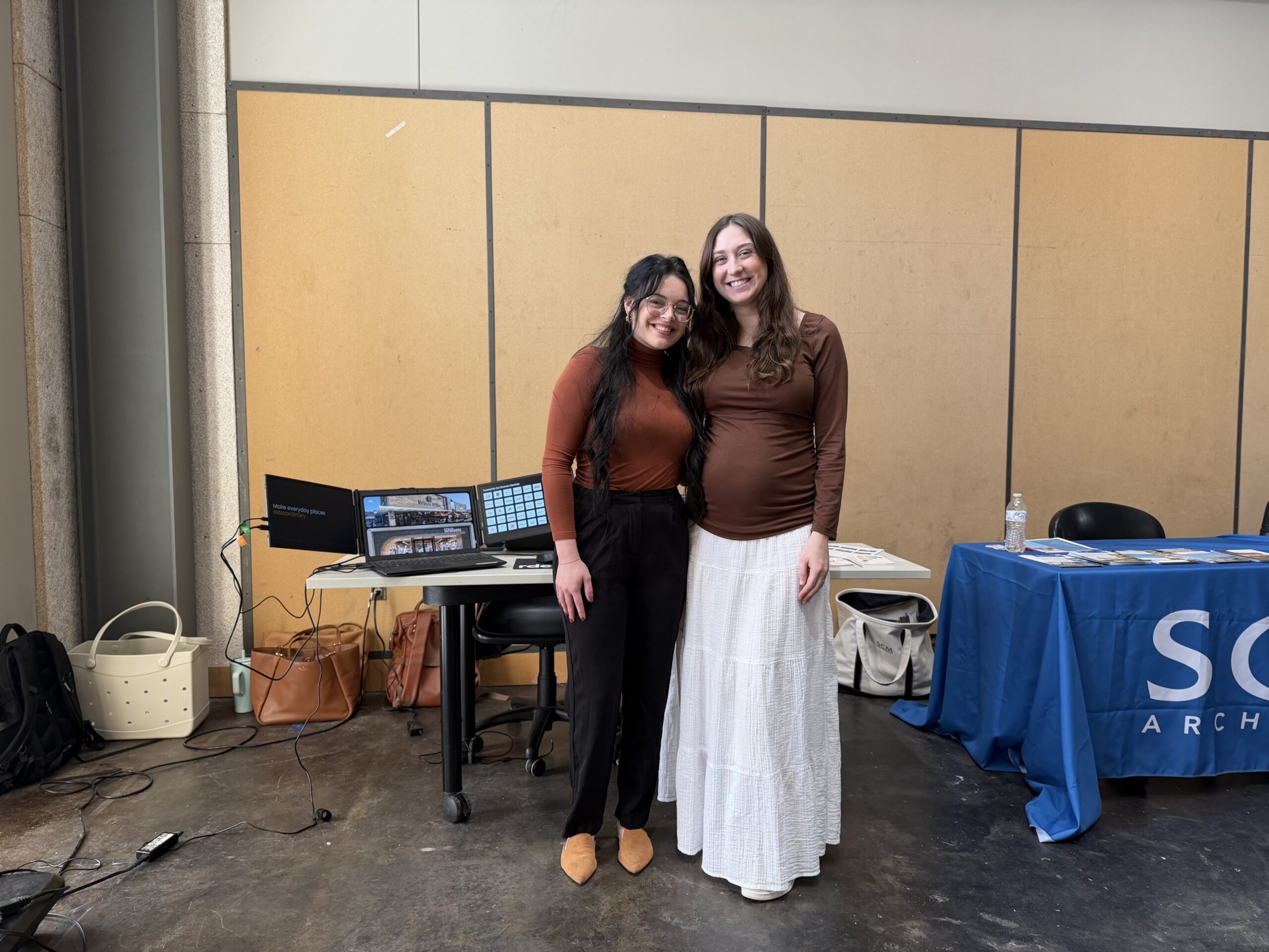 This opportunity led to Katelyn Denley and Haley Mitchell being invited to Louisiana Tech’s Career Fair Day, where Architecture and Interior Design students meet with various firms and participate in on-site mock interviews. The career fair gives students valuable exposure to the wide range of opportunities within architecture while helping them connect real-world professionalism with the design concepts they study in the classroom.