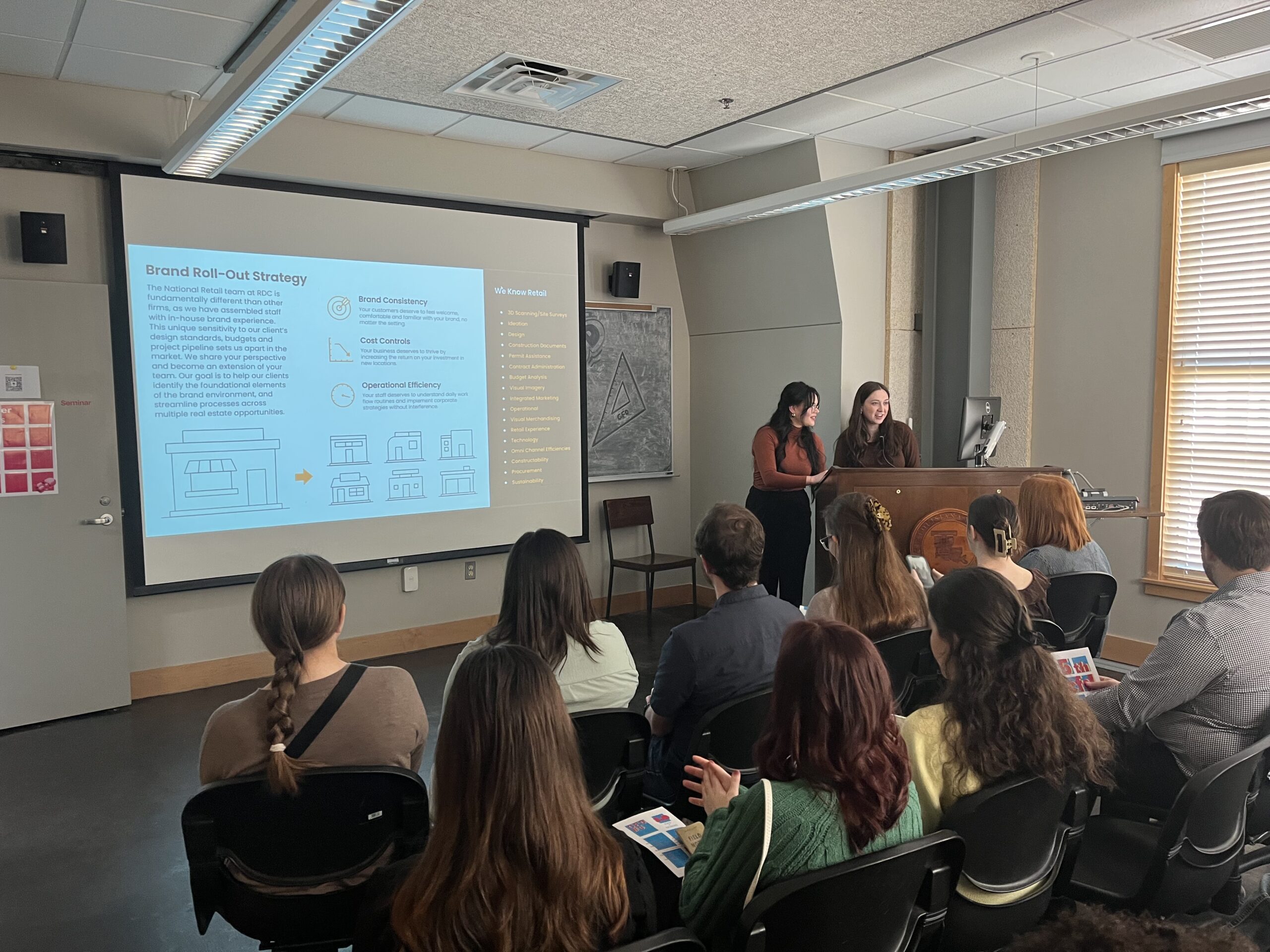 While there, Katelyn and Haley hosted a Pecha Kucha style presentation for interested students—filling the room—to share more about what the firm does on a daily basis and how it strives to make everyday places extraordinary. Following the presentation, students were invited to visit RDC National Retail Team’s table to ask questions about the firm, explore available opportunities, and learn how RDC supports professional growth. Throughout the day, the team also conducted sit-in mock interviews with students interested in joining the firm—creating meaningful conversations focused not only on how students can learn from RDC, but also on the unique strengths and perspectives they can bring to the team.