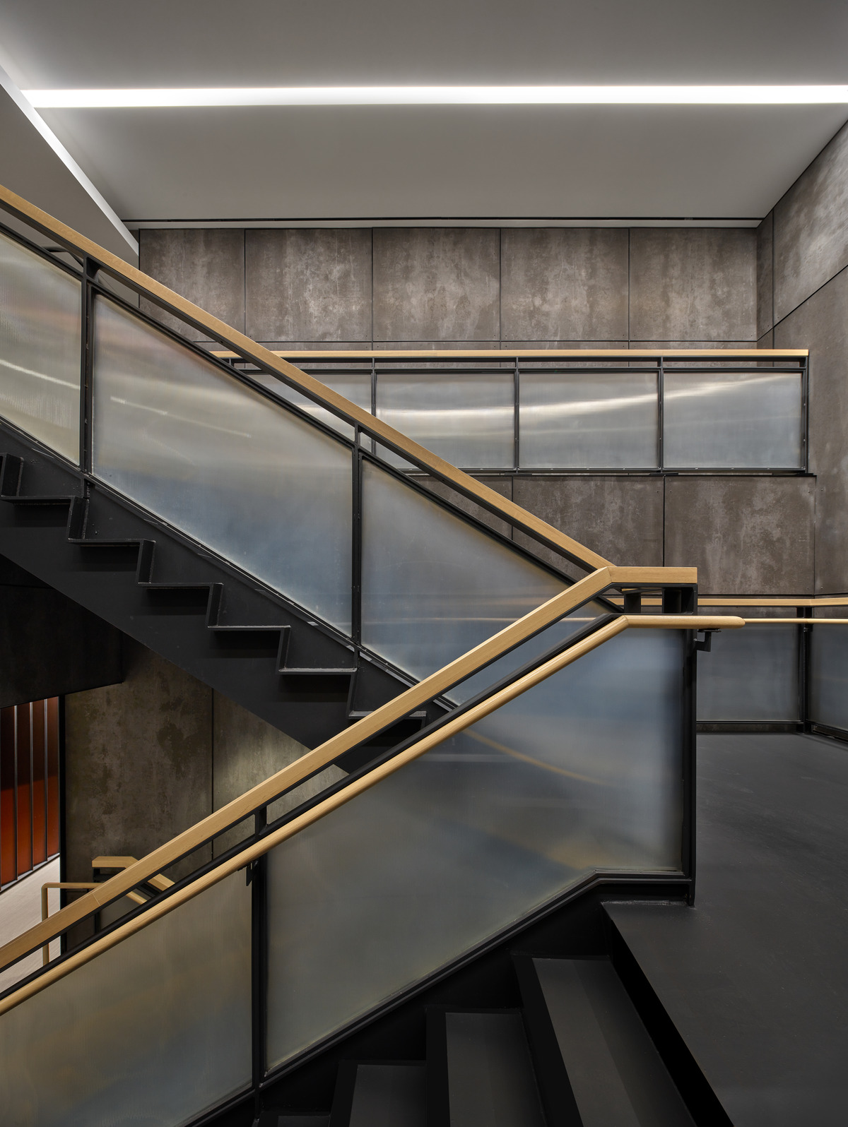 The first level welcomes the urban streetscape into a contrasting ‘rest bit’ space amenities with concierge, elixir bar, tech lounge and athleisure boutique. The second level clusters the large and expansive fitness and wellness spaces including weights, cardio, locker, showers, sauna and spa. The third level is a collection of intimate boutique fitness environment offering Pilates, cycling, yoga and barre that share a Zen meditation space enveloped with a warm palette of wood rods surrounding the ceiling and walls.
