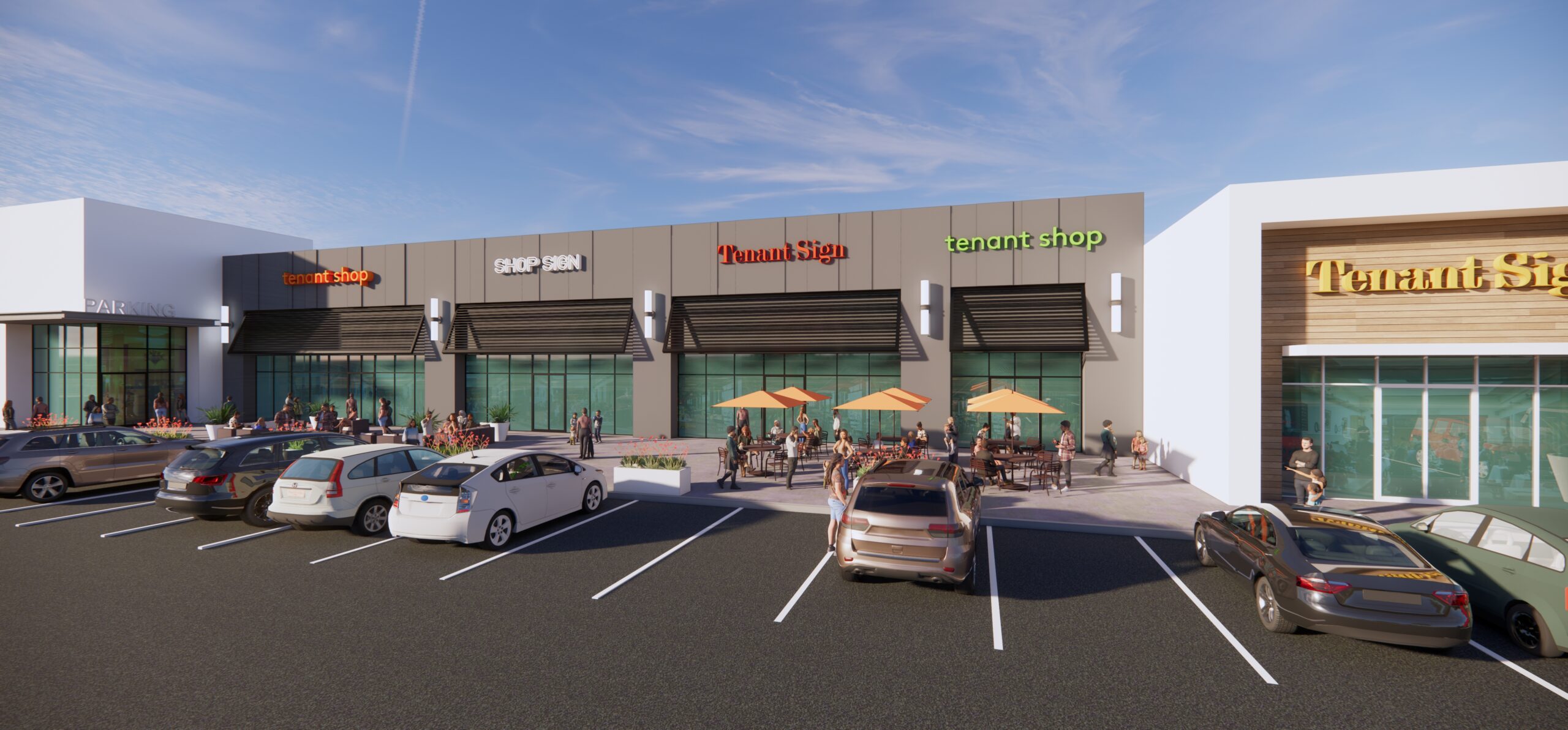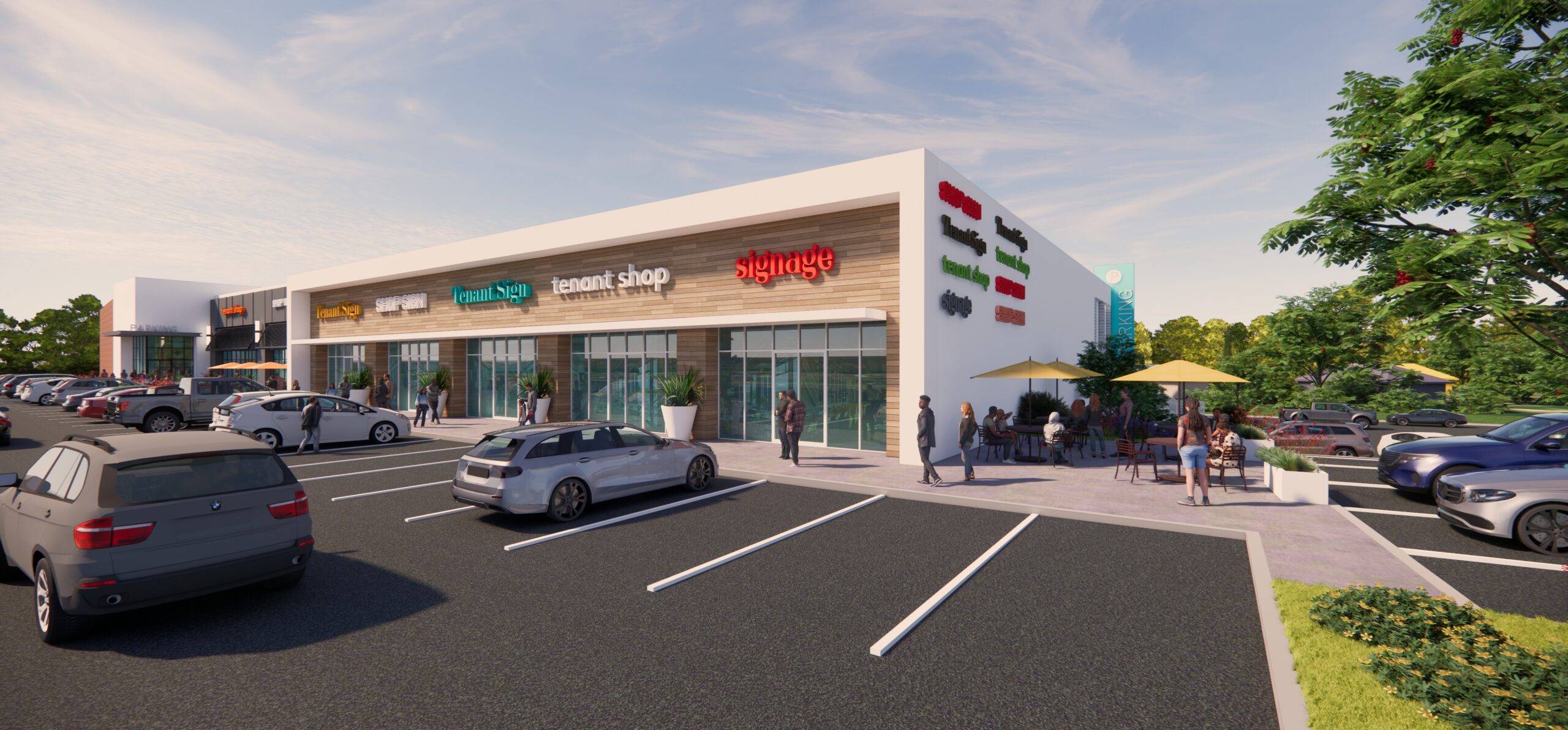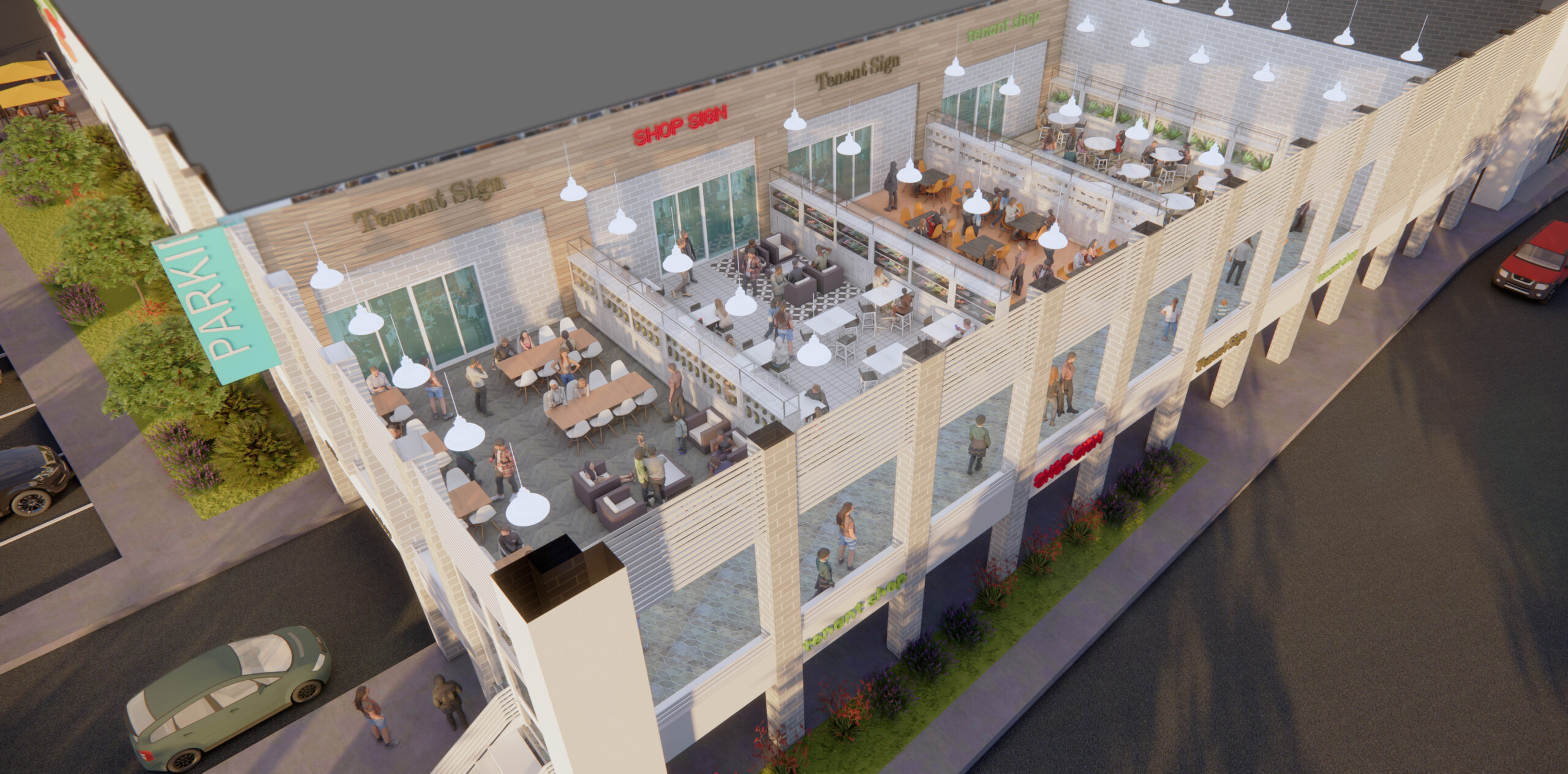 This conceptual repositioning project in Valley Stream, New York reimagines a large single-tenant commercial building as a dynamic multi-tenant retail/food destination. The subdivided spaces accommodate a diverse mix of services and amenities designed to re-activate the site and elevate the overall customer experience. The building mass is selectively opened to create indoor and outdoor spaces. The facades are articulated with upgraded materials and finishes that encourage exploration and discovery through thoughtfully designed placemaking areas. Highly visible amenities are introduced along the primary façade, taking advantage of prominent exposure to Sunrise Highway. The project’s deep two-story footprint allows for generous lower-level parking while supporting open-air dining and gathering spaces at the rear, resulting in a fully integrated, 360-degree retail and experiential environment.